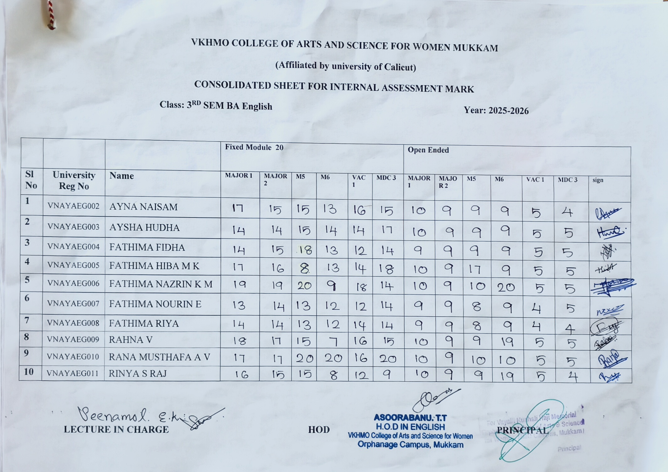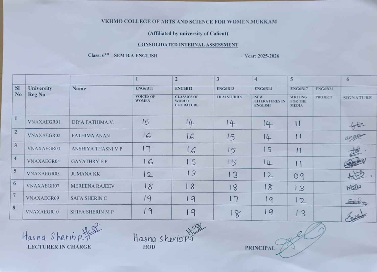 6TH SEM INTERNAL MARK CONSOLIDATED MARK LIST BA ENGLISH...