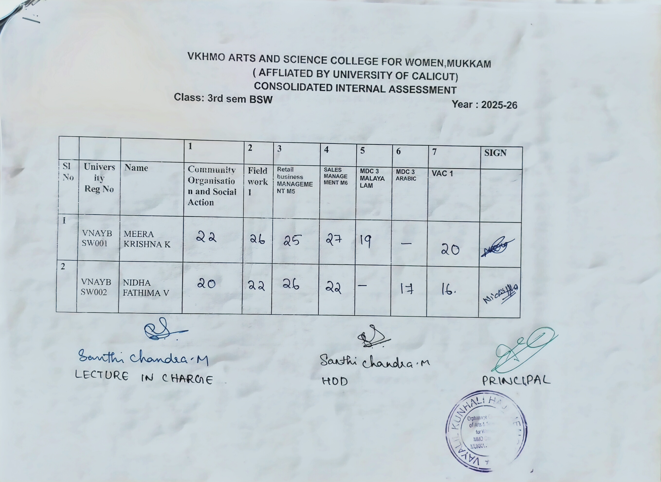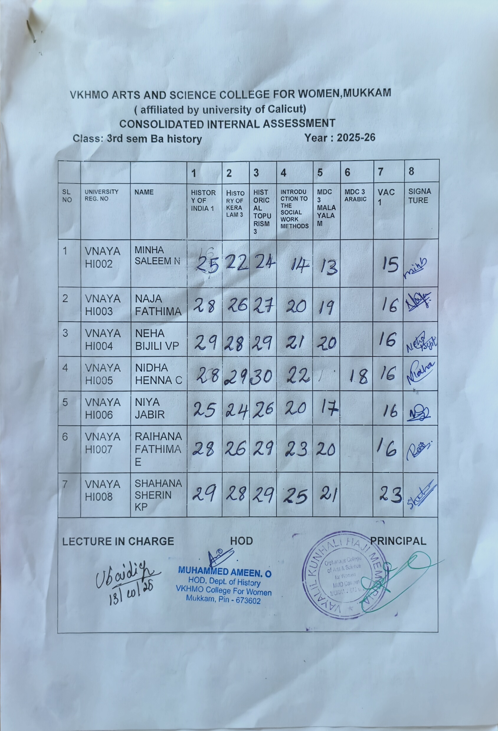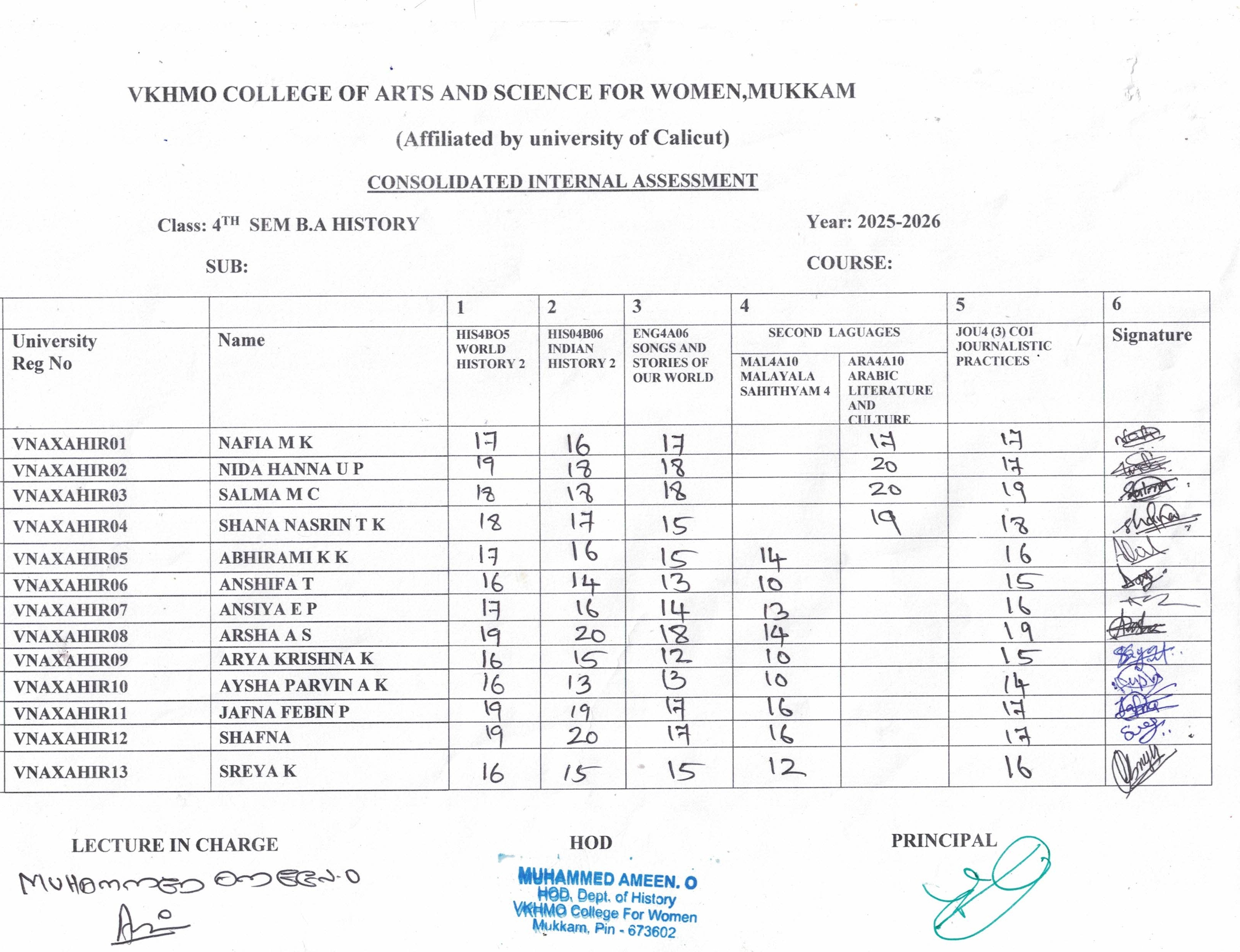 6th sem internal mark consolidated mark list BA HISTORY...